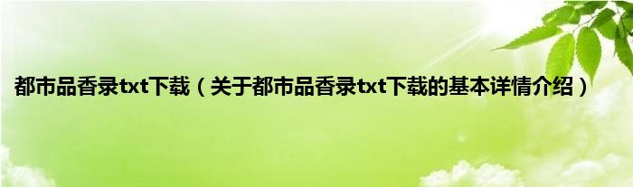 本文关于都市品香录txt下载的基本详情介绍就讲解完毕,希望对大家有所帮助。