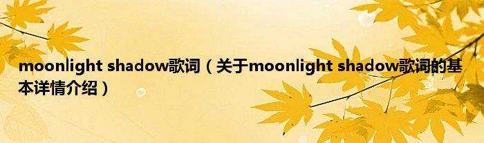 本文关于moonlight shadow歌词的基本详情介绍就讲解完毕,希望对大家有所帮助。