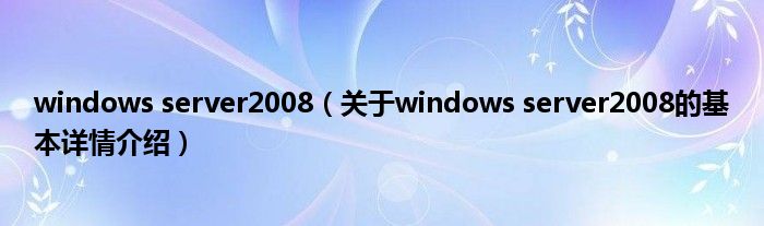 本文关于windows server2008的基本详情介绍就讲解完毕,希望对大家有所帮助。