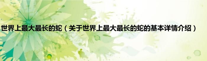 世界上最大最长的蛇(关于世界上最大最长的蛇的基本详情介绍)