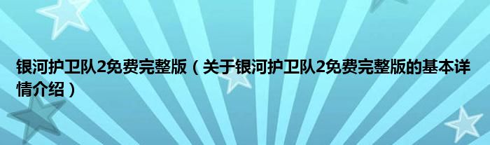 本文关于银河护卫队2免费完整版的基本详情介绍就讲解完毕,希望对大家有所帮助。