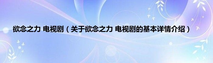 本文关于欲念之力 电视剧的基本详情介绍就讲解完毕,希望对大家有所帮助。