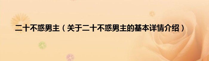 本文关于二十不惑男主的基本详情介绍就讲解完毕,希望对大家有所帮助。