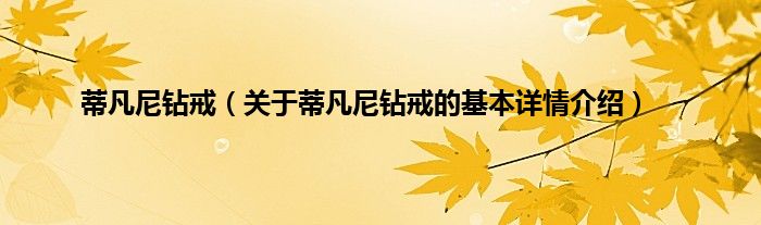 本文关于蒂凡尼钻戒的基本详情介绍就讲解完毕,希望对大家有所帮助。