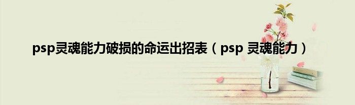 大家好,小问来为大家解答以上问题。psp灵魂能力破损的命运出招表,psp 灵魂能力这个很多人还不知道,现在让我们一起来看看吧!