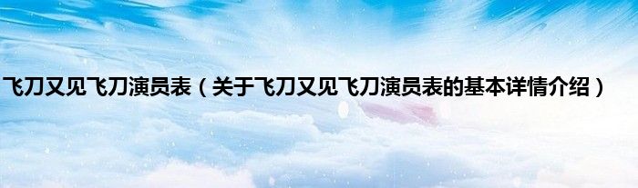 本文关于飞刀又见飞刀演员表的基本详情介绍就讲解完毕,希望对大家有所帮助。