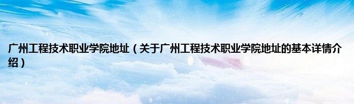 本文关于广州工程技术职业学院地址的基本详情介绍就讲解完毕,希望对大家有所帮助。