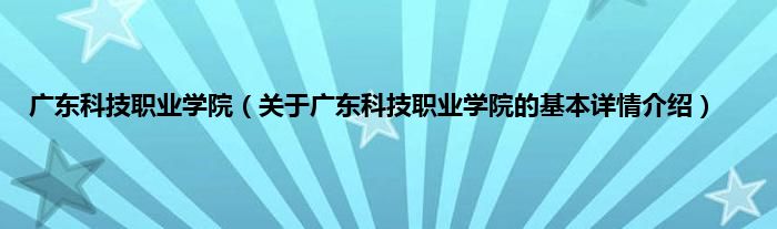 本文关于广东科技职业学院的基本详情介绍就讲解完毕,希望对大家有所帮助。