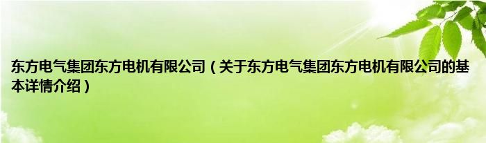 本文关于东方电气集团东方电机有限公司的基本详情介绍就讲解完毕,希望对大家有所帮助。