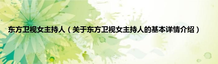 本文关于东方卫视女主持人的基本详情介绍就讲解完毕,希望对大家有所帮助。