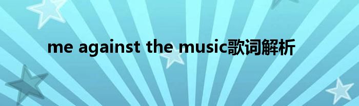 大家好,小问来为大家解答以上问题。me against the music歌词解析这个很多人还不知道,现在让我们一起来看看吧!