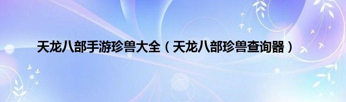 天龙八部手游珍兽大全(天龙八部珍兽查询器)