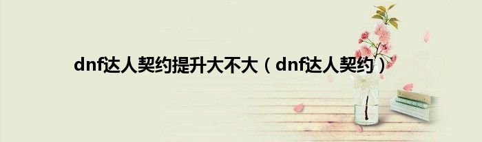 大家好,小问来为大家解答以上问题。dnf达人契约提升大不大,dnf达人契约这个很多人还不知道,现在让我们一起来看看吧!