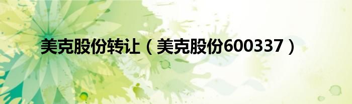 大家好,小问来为大家解答以上问题。美克股份转让,美克股份600337这个很多人还不知道,现在让我们一起来看看吧!
