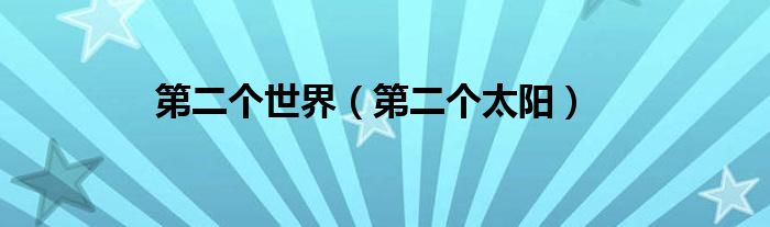 大家好,小问来为大家解答以上问题。第二个世界,第二个太阳这个很多人还不知道,现在让我们一起来看看吧!