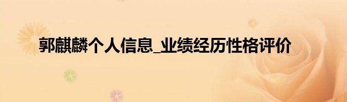 本文郭麒麟个人信息_业绩经历性格评价到此分享完毕,希望对大家有所帮助。