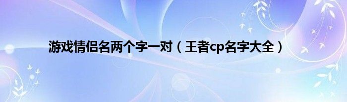 大家好,综合小编来为大家讲解下。游戏情侣名两个字一对,王者cp名字大全这个很多人还不知道,现在让我们一起来看看吧!