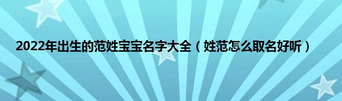 大家好,综合小编来为大家讲解下。2022年出生的范姓宝宝名字大全,姓范怎么取名好听这个很多人还不知道,现在让我们一起来看看吧!