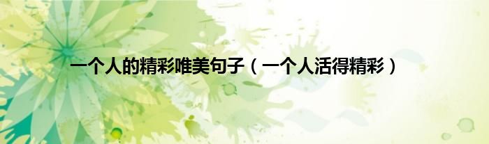 以上就是【一个人的精彩唯美句子,一个人活得精彩】相关内容。