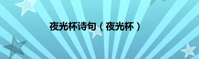 以上就是【夜光杯诗句,夜光杯】相关内容。