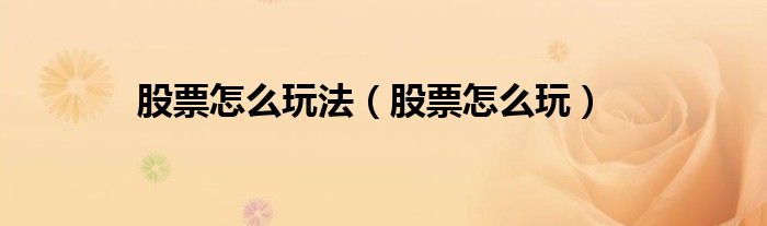大家好,小问来为大家解答以上问题。股票怎么玩法,股票怎么玩这个很多人还不知道,现在让我们一起来看看吧!