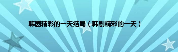 以上就是【韩剧精彩的一天结局,韩剧精彩的一天】相关内容。