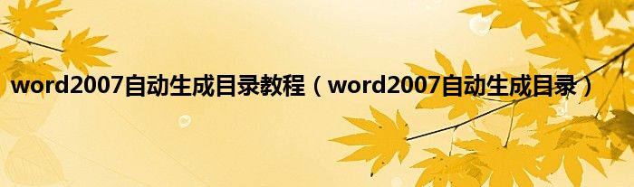 以上就是【word2007自动生成目录教程,word2007自动生成目录】相关内容。