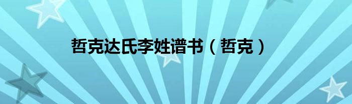 大家好,小问来为大家解答以上问题。哲克达氏李姓谱书,哲克这个很多人还不知道,现在让我们一起来看看吧!