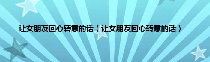 以上就是【让女朋友回心转意的话,让女朋友回心转意的话】相关内容。