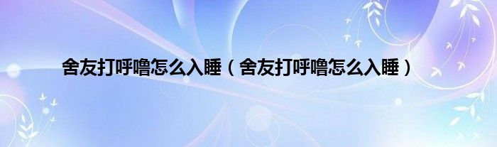 大家好,小问来为大家解答以上问题。舍友打呼噜怎么入睡,舍友打呼噜怎么入睡这个很多人还不知道,现在让我们一起来看看吧!
