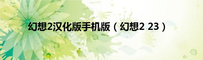 大家好,小问来为大家解答以上问题。幻想2汉化版手机版,幻想2 23这个很多人还不知道,现在让我们一起来看看吧!
