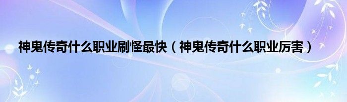 神鬼传奇什么职业刷怪最快(神鬼传奇什么职业厉害)