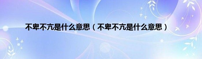 不卑不亢是什么意思(不卑不亢是什么意思)