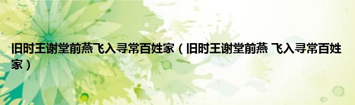以上就是【旧时王谢堂前燕飞入寻常百姓家,旧时王谢堂前燕 飞入寻常百姓家】相关内容。