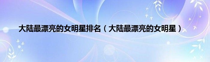 以上就是【大陆最漂亮的女明星排名,大陆最漂亮的女明星】相关内容。