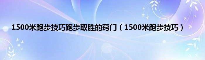 以上就是【1500米跑步技巧跑步取胜的窍门,1500米跑步技巧】相关内容。
