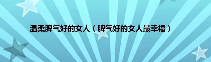 大家好,小问来为大家解答以上问题。温柔脾气好的女人,脾气好的女人最幸福这个很多人还不知道,现在让我们一起来看看吧!