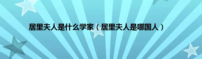 以上就是【居里夫人是什么学家,居里夫人是哪国人】相关内容。