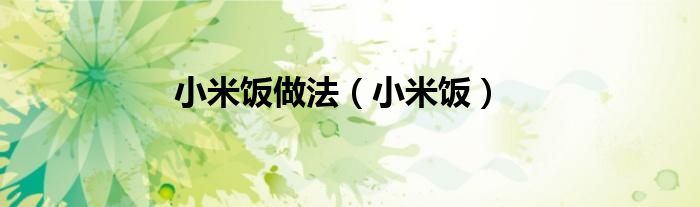 大家好,小问来为大家解答以上问题。小米饭做法,小米饭这个很多人还不知道,现在让我们一起来看看吧!