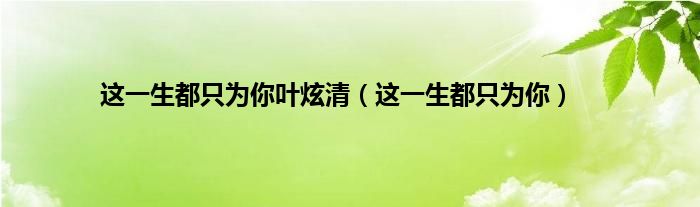 以上就是【这一生都只为你叶炫清,这一生都只为你】相关内容。