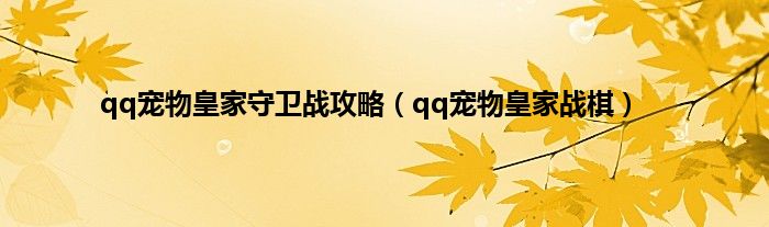 大家好,小问来为大家解答以上问题。qq宠物皇家守卫战攻略,qq宠物皇家战棋这个很多人还不知道,现在让我们一起来看看吧!