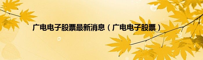 大家好,小问来为大家解答以上问题。广电电子股票最新消息,广电电子股票这个很多人还不知道,现在让我们一起来看看吧!