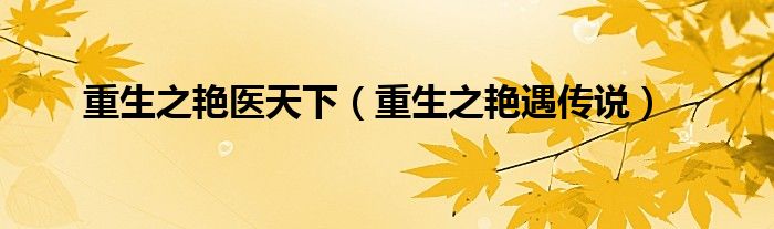 大家好,小问来为大家解答以上问题。重生之艳医天下,重生之艳遇传说这个很多人还不知道,现在让我们一起来看看吧!