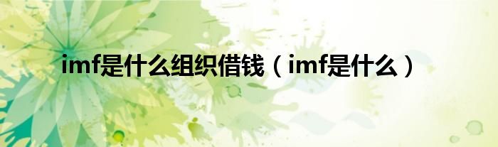 以上就是【imf是什么组织借钱,imf是什么】相关内容。