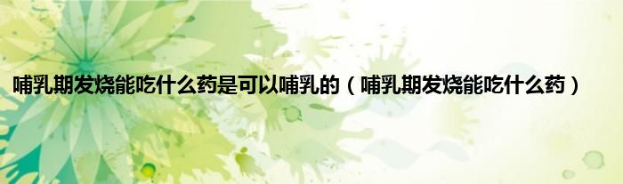 本文,哺乳期发烧能吃什么药是可以哺乳的,哺乳期发烧能吃什么药到此就分享完毕,希望对大家有所帮助。