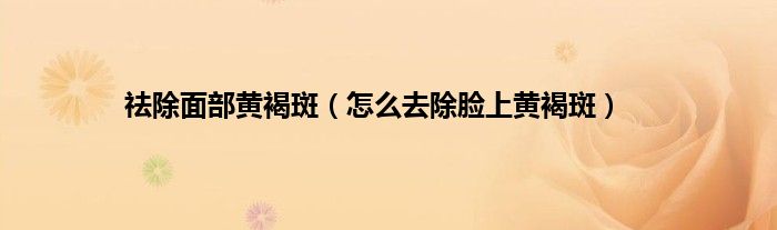本文,祛除面部黄褐斑,怎么去除脸上黄褐斑到此就分享完毕,希望对大家有所帮助。