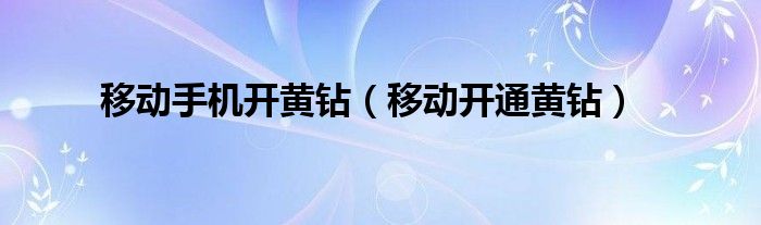 以上就是【移动手机开黄钻,移动开通黄钻】相关内容。