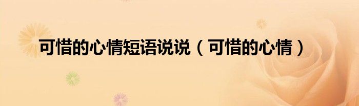 大家好,小问来为大家解答以上问题。可惜的心情短语说说,可惜的心情这个很多人还不知道,现在让我们一起来看看吧!