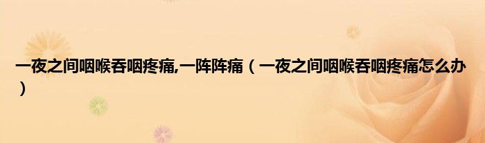 本文,一夜之间咽喉吞咽疼痛,一阵阵痛,一夜之间咽喉吞咽疼痛怎么办到此就分享完毕,希望对大家有所帮助。