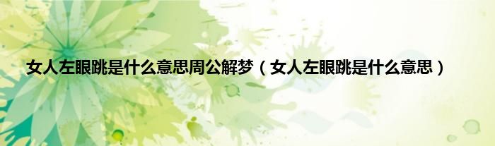 以上就是【女人左眼跳是什么意思周公解梦,女人左眼跳是什么意思】相关内容。